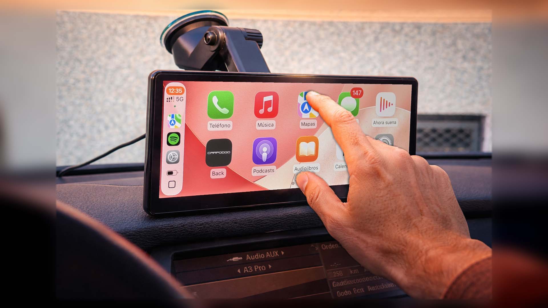 La CarpodGo T3 Pro es un dispositivo que, sin necesidad de cambiar la radio ni hacer instalaciones, transforma completamente la experiencia dentro del coche. Se trata de una pantalla con Android Auto y CarPlay, inalámbrica, que te llama la atención por su calidad visual, y te termina de convencer por su rendimiento.